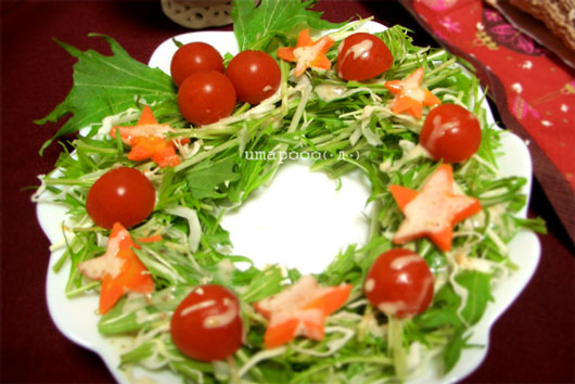 水菜がクリスマスっぽくてお気に入り。キャベツと水菜、星はニンジン。