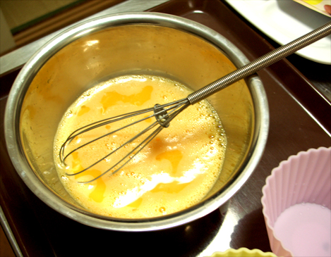 その後に砂糖と卵黄2つを1つずつ加えながらまぜます。レモン汁(ポッカレモン可)とバニラエッセンスも加えます。