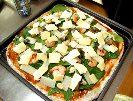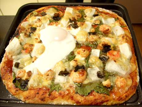 エビチリは、そのままでもおいしいので、ピザに乗ってもおいしい。