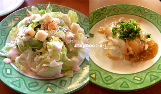 (左) シーザーサラダ 2人前 (サラダ・食べ放題ではありません)