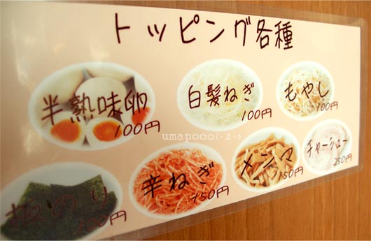 100円…半熟卵・板のり・白髪ねぎ・もやし