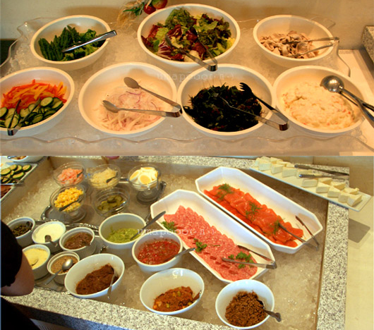 お料理はおかず系が少ない(ない?)ですが、サンドイッチの具としておいてある野菜やスモークサーモン等そのままサラダみたいに食べちゃいました。おいしかったです(^^*)