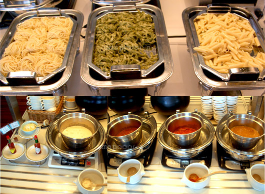 パスタは、自分でお湯に入れて温めて、ソースをかけるというスタイルです。