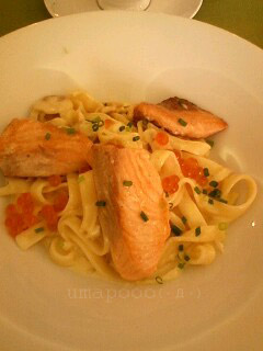 画像は【サーモンとイクラのパスタ】と本日のランチお肉(笑)名前忘れちゃいました