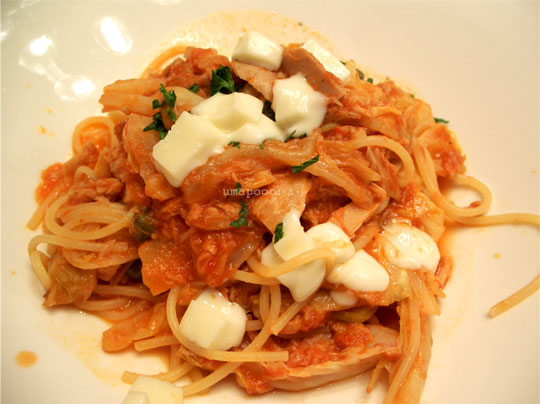 トマトの酸味のおかげで、思ったよりもサッパリしています。